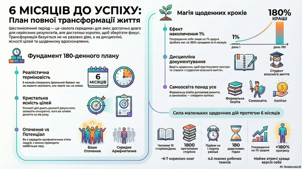 Більшість людей переоцінюють те, що вони можуть зробити для свого здоров’я за день, але недооцінюють те, як кардинально можна змінити самопочуття за шість місяців. Шість місяців — це «золота середина»: достатньо часу, щоб біологічні ритми стабілізувалися, але достатньо короткий термін, щоб зберігати фокус.